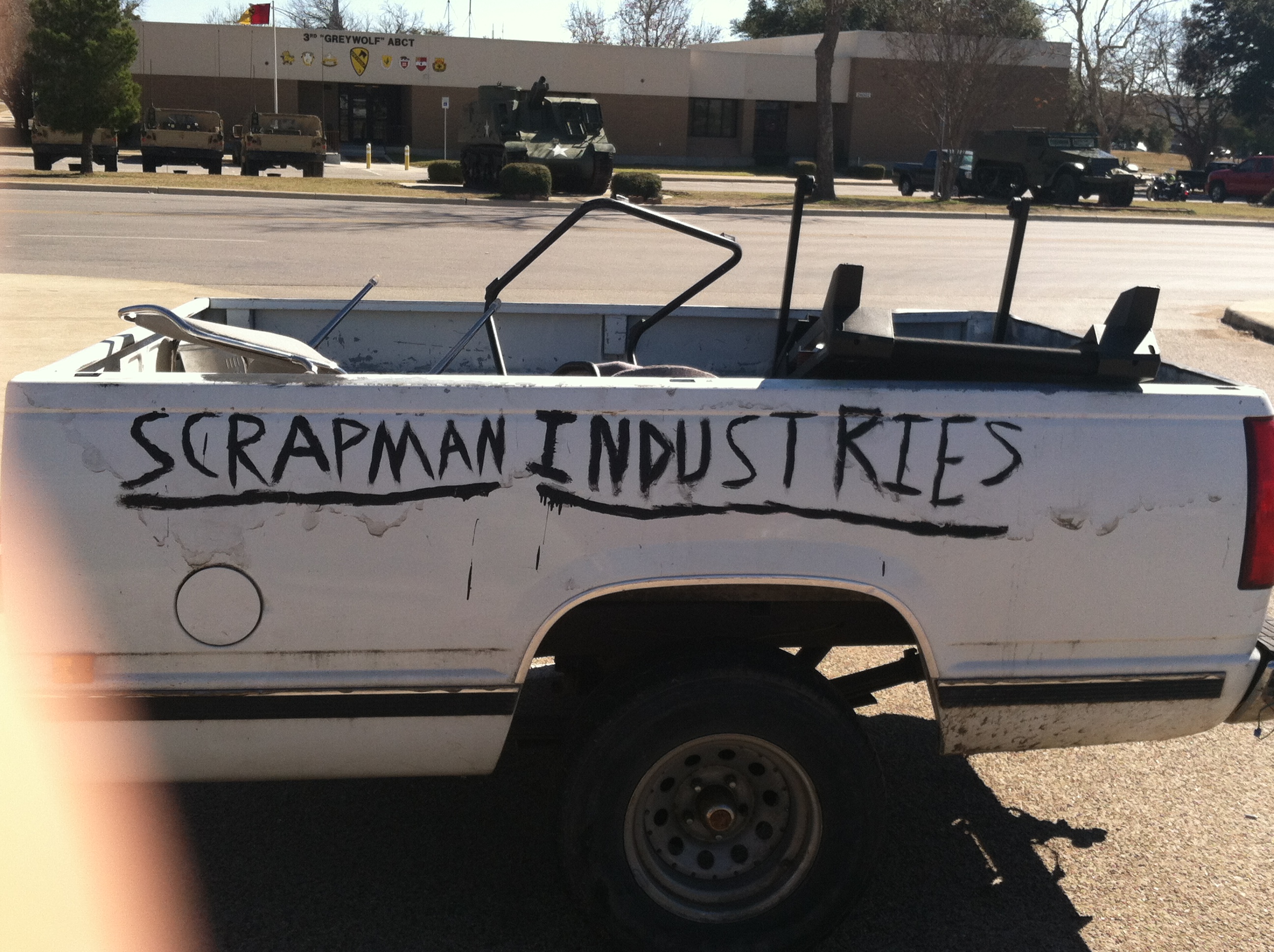 So I got a new to me truck with a rotten tailgate on it, and since the tailgate is getting replaced when I come back from overseas I thought it would be a good time to play around with an advertising Idea I had. My truck advertisement was just putting my business name hand painted on the side of my trucked trailer I had on Ft. Hood. that seemed to work well. so I decided to spray paint this tailgate to see the responses up here. with in the first week of me having the truck and being in an area completely new to me it got me $100 in the first week I was there. It was pretty simple and really basic. My phone number is painted below the metal recycling. I even spelled it wrong and still got hits from it. most were in person, but it did work. when I come back from this deployment and get a new tailgate this is definitely going back on. I may even get a wrap or paint the side of my bed again. that seemed to work too.