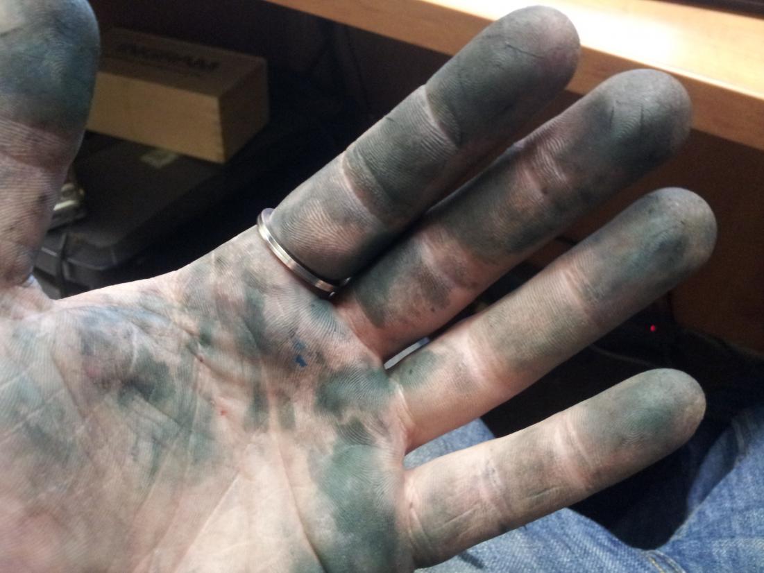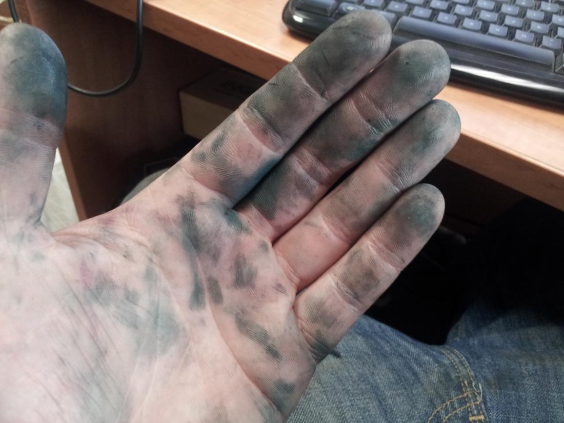 i wear vinyl gloves with work gloves over top. I deal with copiers and other electronics that get left outside