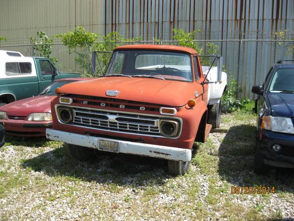 So, a few days ago, i was scouring Craigslist late at night trying to find a decent deal on car i could flip quick. I came across a nice older truck and ended up calling the guy the next morning. I went out to look at it the day after and quickly realized that i wont be able to get rid of it. 15 minutes later and $450 poorer, i became the proud owner of a 1966 Ford F500. Doesnt run but its complete. It has the 330 and 4 speed manual. Im going to get it running, drive it around for a while, then tear it apart. I will be dropping in a first gen 7.3 and ZF5 because the 330 sucks but i mostly just love diesel. Also, ill be building a flatbed for it but that may end up waiting until after winter. Anyways, thats all i have for it right now. Hopefully this one works out better than past vehicles