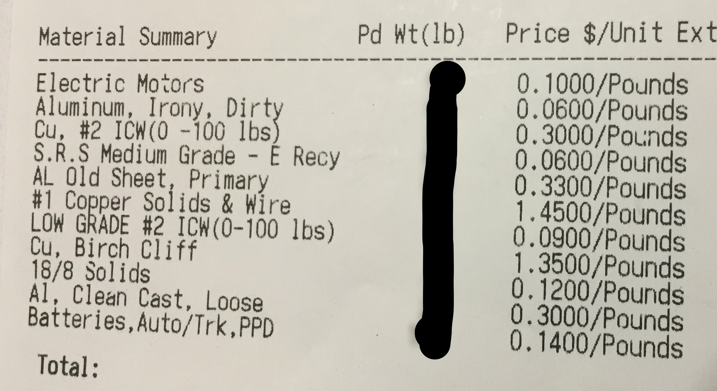 the irony aluminum was paid at about a 20% recovery so it was a car transmission or worse???