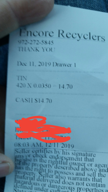 Bulky item pick up by me. As prices so low you would not think there would be much scrappers but its been very busy here due to the city no longer sending out notices of when the pick up is. You need to look on line to find out so not much stuff out. But one guy is smart had his girl write up signs and put them out in the neighborhoods the week before pick up. I haven't. been picking up much lately. But have seen the same signs in other areas. Great idea.