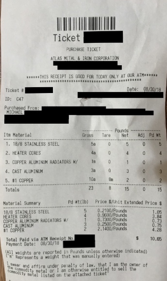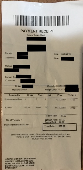 The 720 pound ticket was from office furniture and file cabinets from one business 4 miles from the scrapyard from a 10 day old Craigslist Ad.