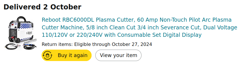 plasma cutter that I had sold years ago with the tiny one branded as Reboot for $200.00 Canadian.